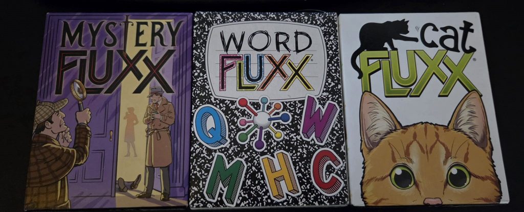 Have you played a Fluxx game before? Let me introduce you to Mystery Fluxx, Word Fluxx and Cat Fluxx.